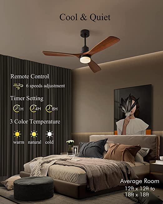 Ceiling Fans with Lights, 60" Wood Ceiling Fan with Remote Control